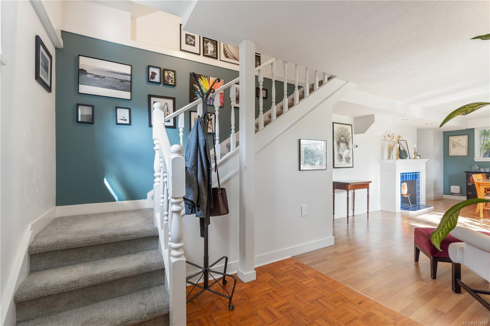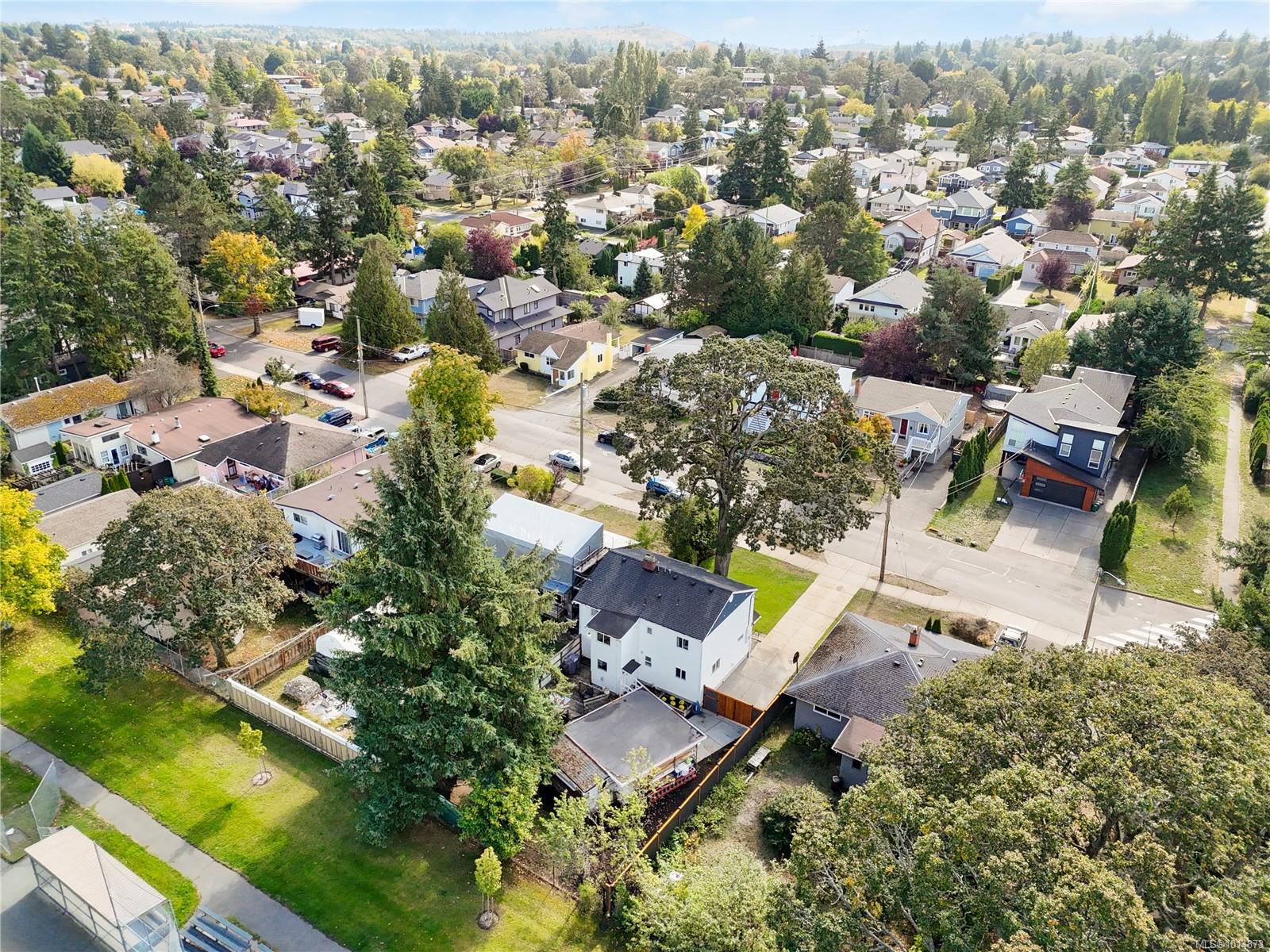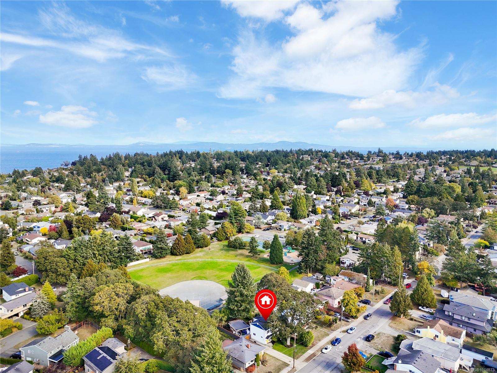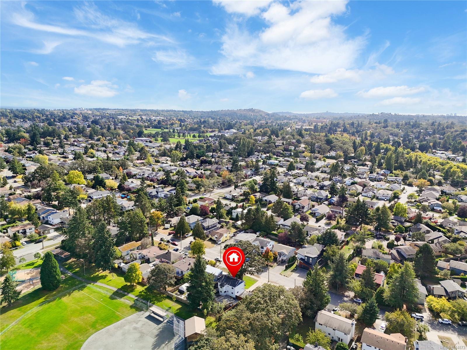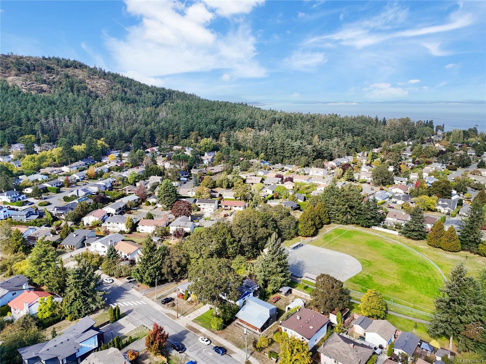 With its picture-perfect exterior and sought-after location, this 3 bedroom, 3 bathroom Gordon Head home offers a refreshing charm. The main floor features a stylish new custom kitchen with wood counters (completed under building permit through Saanich), and a gathering island, plus a comfortable living/dining room with decorative fireplace and a bright family room or den. Upstairs, the generous primary bedroom has an ensuite and its own original fireplace, alongside two additional bedrooms, full bath, a home office, and laundry. The fully fenced backyard opens directly onto Majestic Park, while a carport, workshop, potting area, and storage space add everyday practicality. Many recent updates over the past few years include new carpet, gas furnace and on-demand hot water heater, new roof, irrigation system, central vacuum, and gas BBQ hook up. With UVic, schools, shopping, and transit all close by, this home is ready for its next chapter.