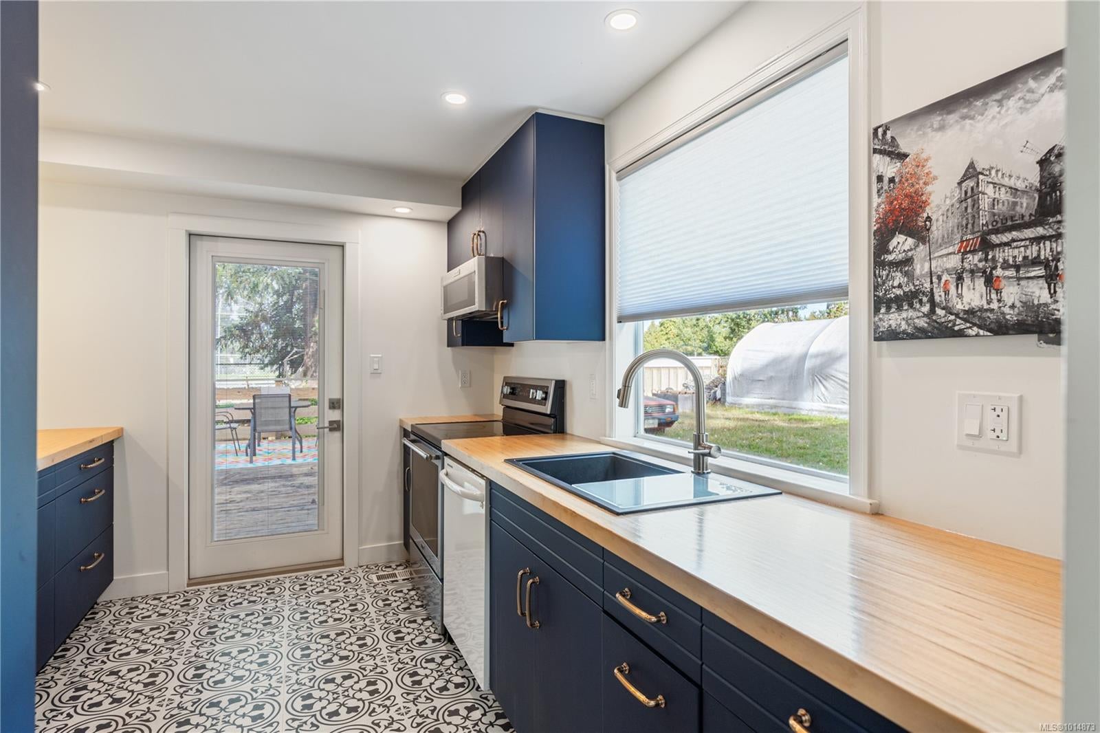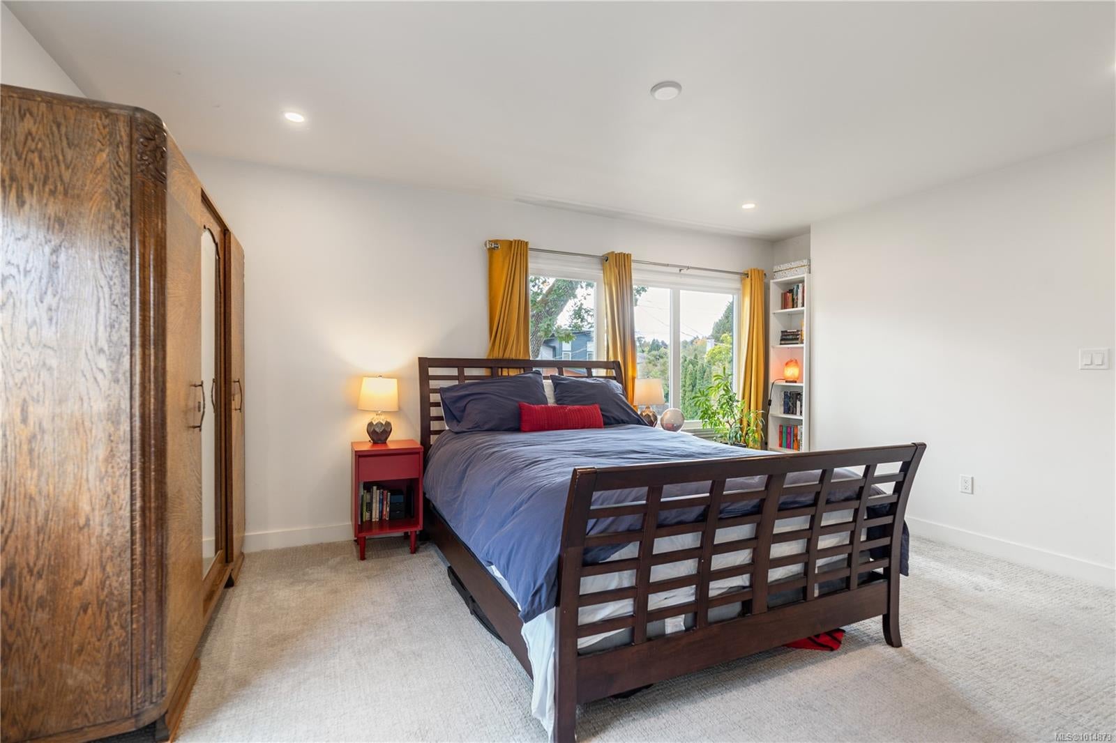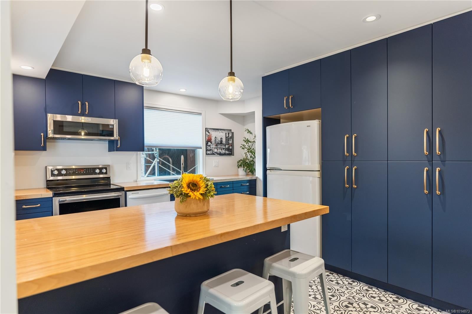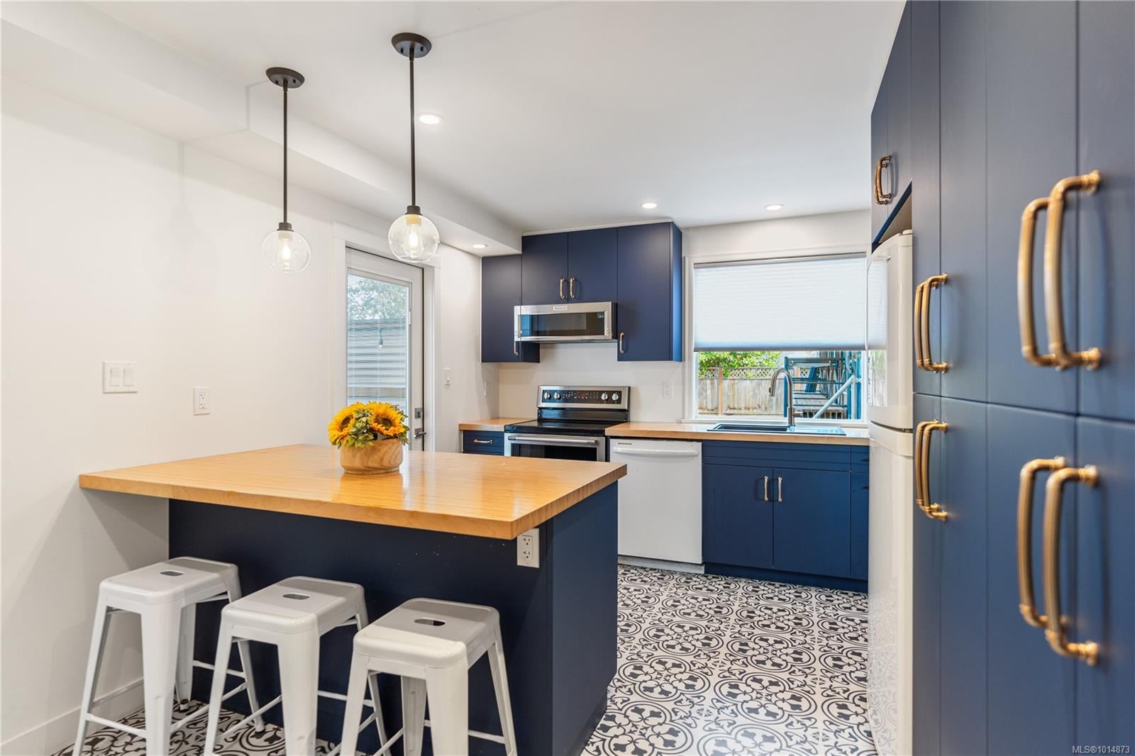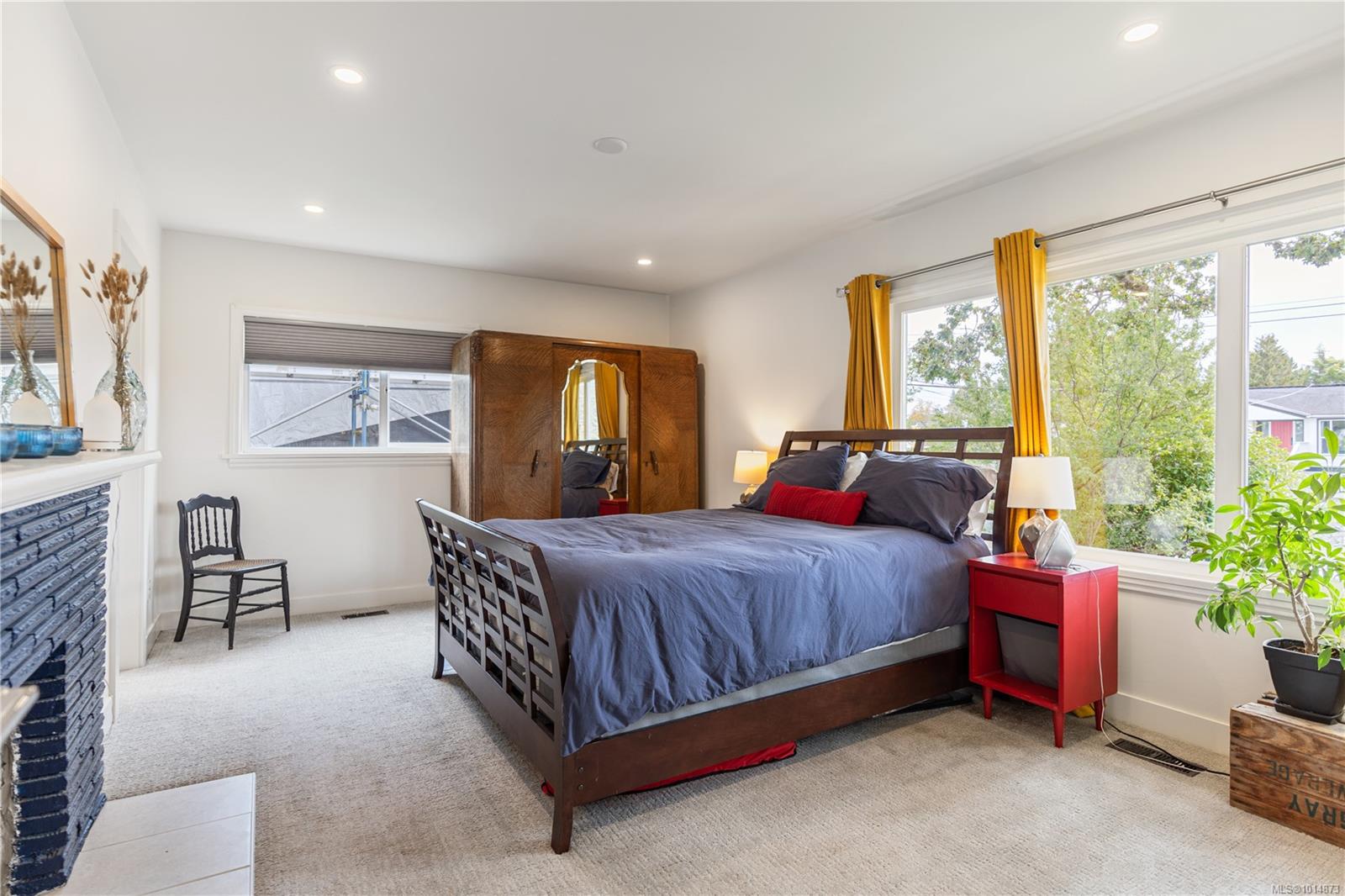 With its picture-perfect exterior and sought-after location, this 3 bedroom, 3 bathroom Gordon Head home offers a refreshing charm. The main floor features a stylish new custom kitchen with wood counters (completed under building permit through Saanich), and a gathering island, plus a comfortable living/dining room with decorative fireplace and a bright family room or den. Upstairs, the generous primary bedroom has an ensuite and its own original fireplace, alongside two additional bedrooms, full bath, a home office, and laundry. The fully fenced backyard opens directly onto Majestic Park, while a carport, workshop, potting area, and storage space add everyday practicality. Many recent updates over the past few years include new carpet, gas furnace and on-demand hot water heater, new roof, irrigation system, central vacuum, and gas BBQ hook up. With UVic, schools, shopping, and transit all close by, this home is ready for its next chapter.