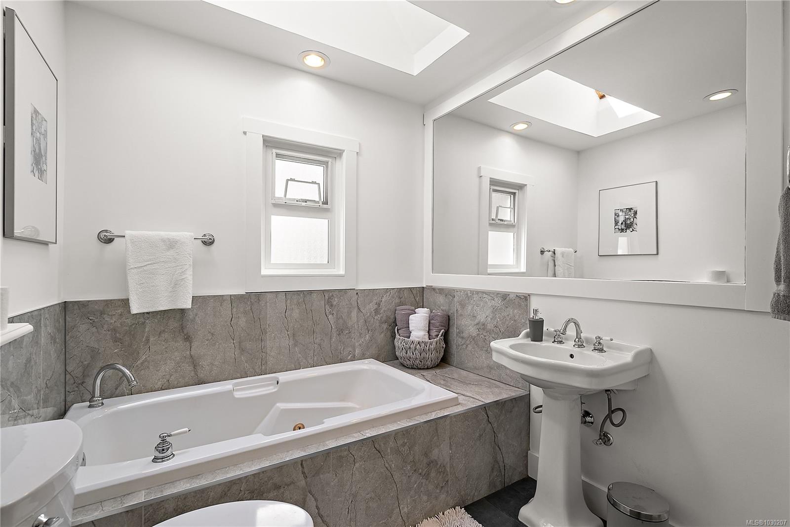 Beautifully updated 1944 home in one of Victoria’s most desirable neighbourhoods, Oaklands. Situated on a quiet, tree-lined street just minutes to downtown and major bus routes, with a 5-minute drive to Royal Jubilee Hospital, Fernwood Village, Hillside Shopping Centre, and Camosun. The main level offers hardwood floors, coved ceilings, a bright living area, spacious updated kitchen, family room, two large bedrooms (one with ensuite) & a spa-inspired bathroom. Upstairs features two additional bedrooms, while the lower level provides 1,000+ sq ft ready for your ideas. Enjoy a sun-filled, fully fenced backyard with a large flat lawn, expansive deck, pergola, and hot tub—perfect for relaxing or entertaining. Excellent walkability to parks, schools, shops, and transit.